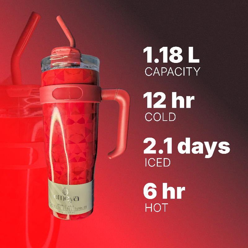 Minimalist elegance meets practicality with the Ameya Tumbler. Whether it’s coffee on-the-go or iced water at the gym, this tumbler delivers with double-wall insulation that keeps drinks cold for 12 hours, iced for 50 hours, and hot for 6 hours. Its modern, slim design makes it ideal for everyday use while keeping things sleek and stylish.